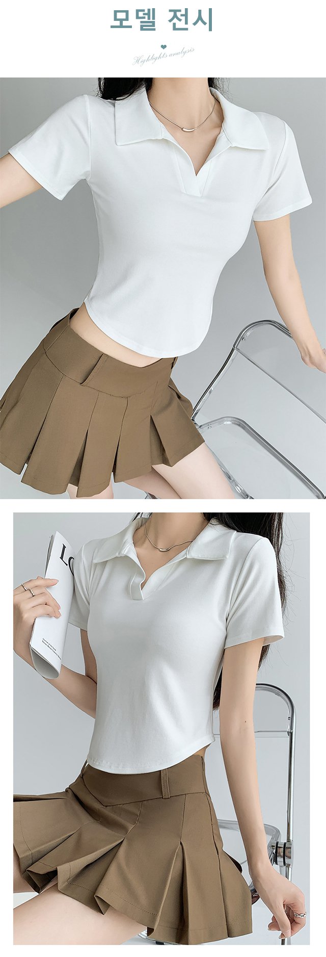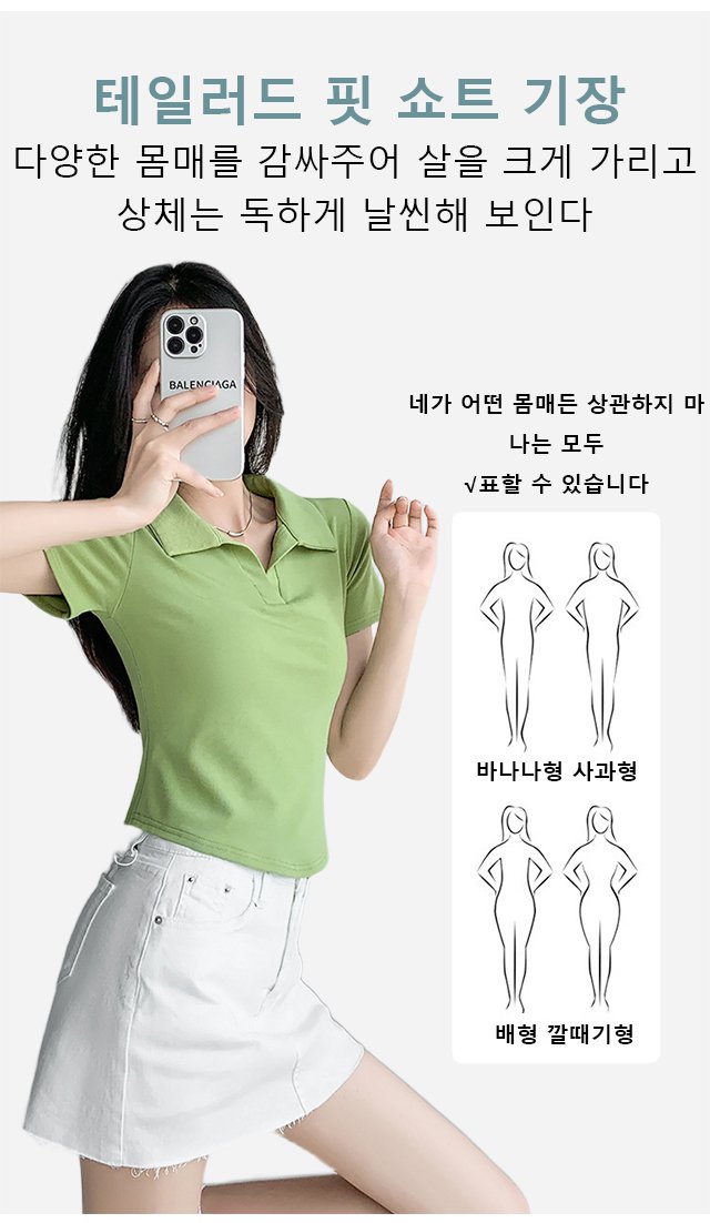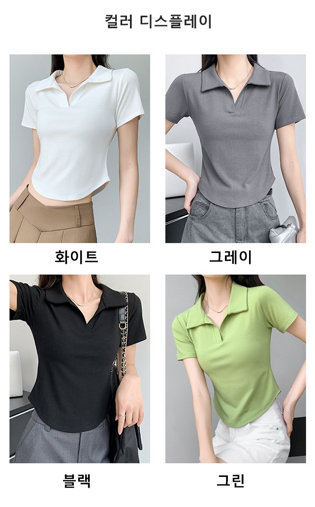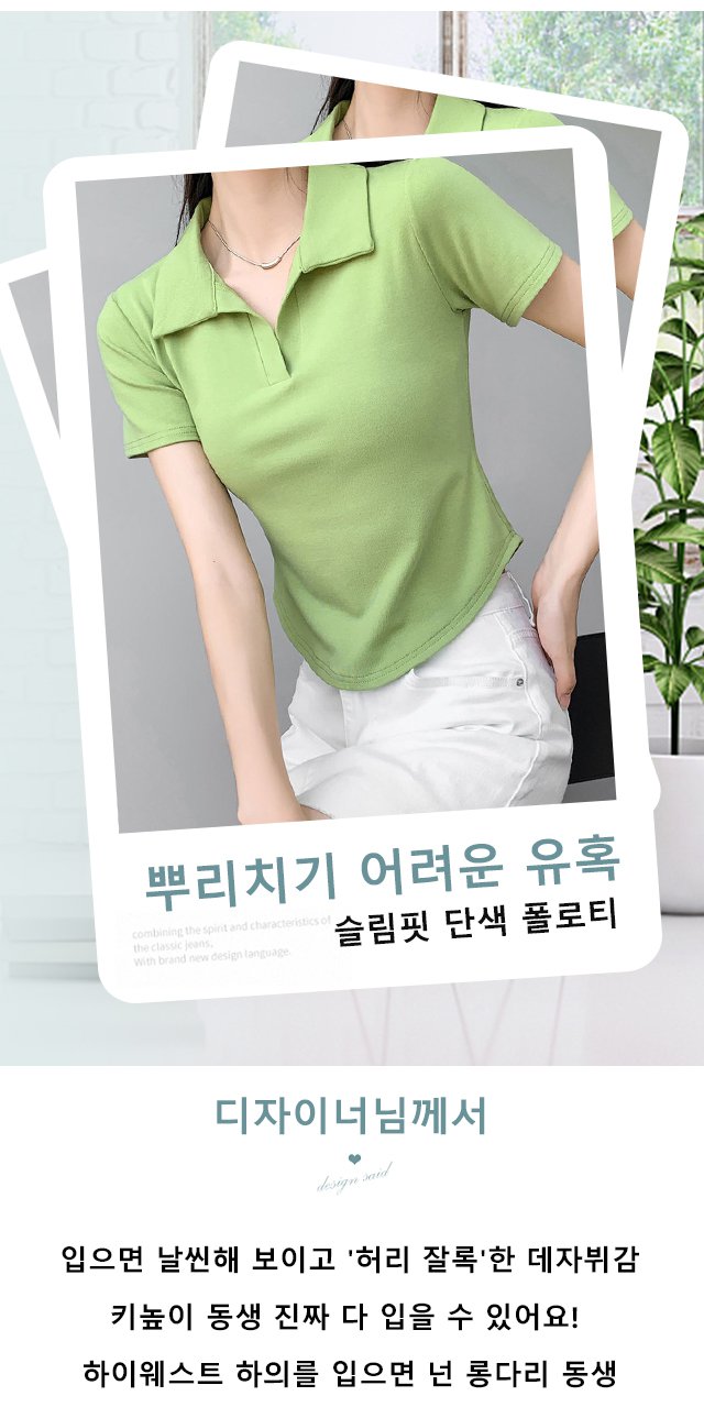 여성슬림순색반팔폴로티